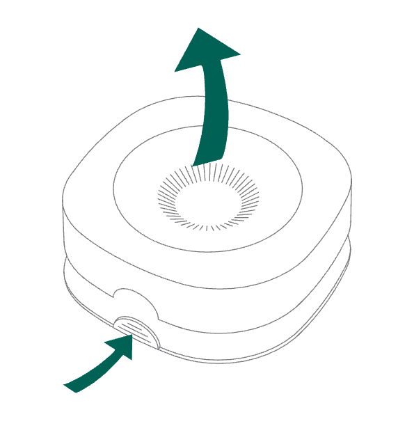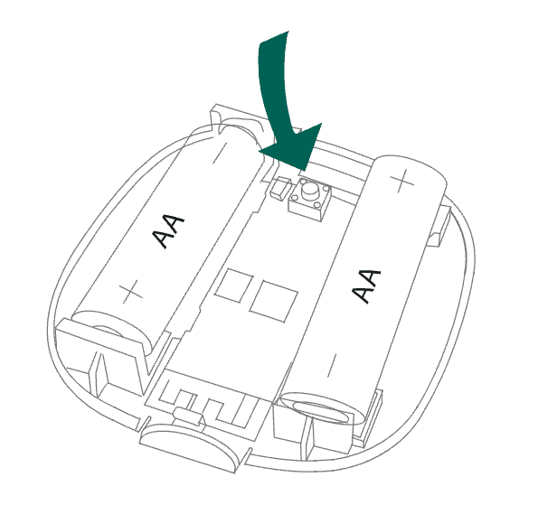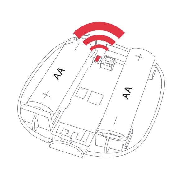 - Åpne huset og hold inne knappen frem til dioden blinker kontinuerlig. Slipp deretter knappen.