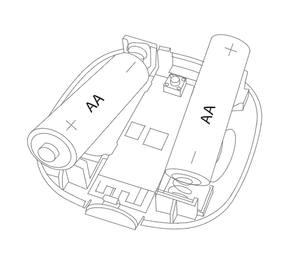 - Åpne huset, og sett inn batterier. Se illustrasjoner.